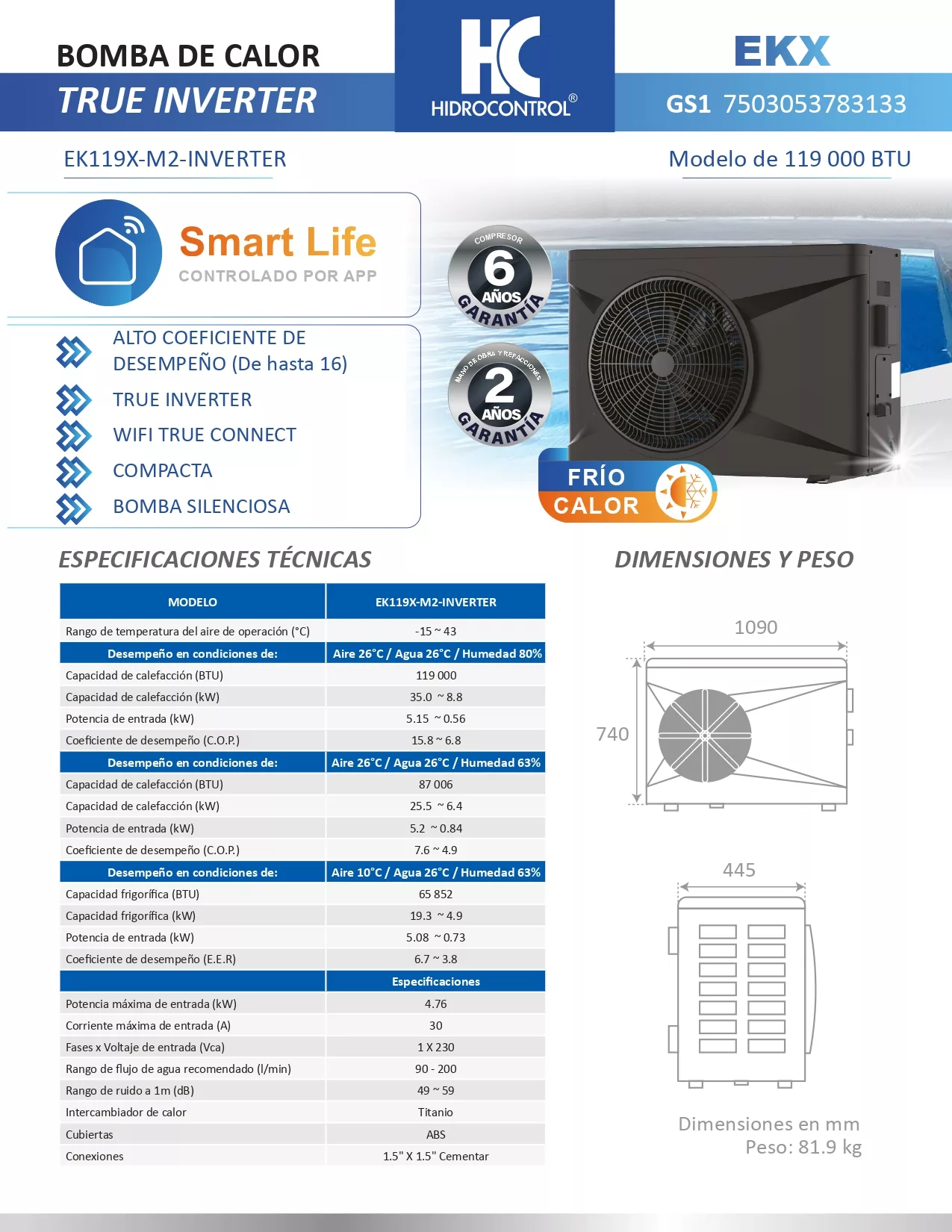 Recomendada para piscinas de hasta 80,000 litros